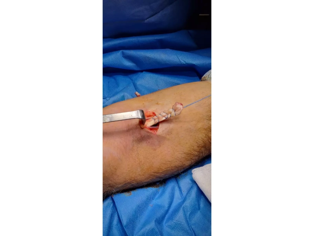 κερκιδικό όγκωμα με μια μικρή τομή και με την χρήση ενός κουμπιού τιτανίου.